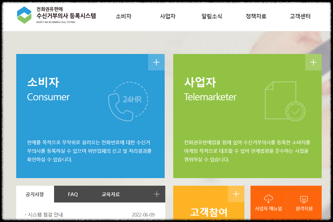 전화권유판매 수신거부의사 등록시스템 (donotcall.go.kr)