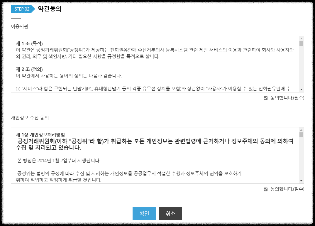 약관동의 하신 후,