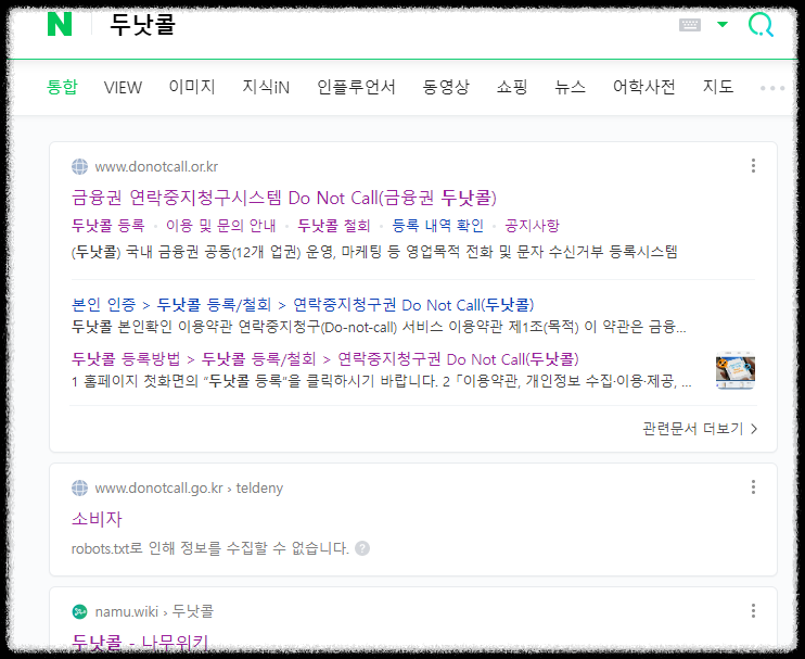 이곳은 전화권유판매 수신거부 의사 등록시스템 ( Do Not Call 두낫콜 ) 입니다